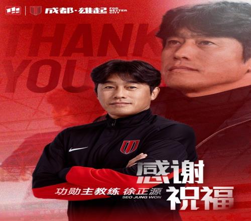 蓉城官宣徐正源离任授予功勋主帅称号执教5年率队2次获中超季军