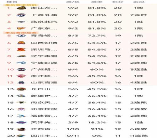 北京时间1月7日,CBA常规赛第11轮已经结束了所有比赛,最新积分榜如下!