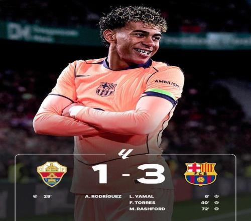 领先之后,巴萨并没有保守,亚马尔在右路持续制造威胁,费尔明和奥尔莫不断前插,埃尔切的防线被拉扯得极不舒服。虽然巴萨大举压上却未能再打破僵局,反倒是被主队抓住机会。